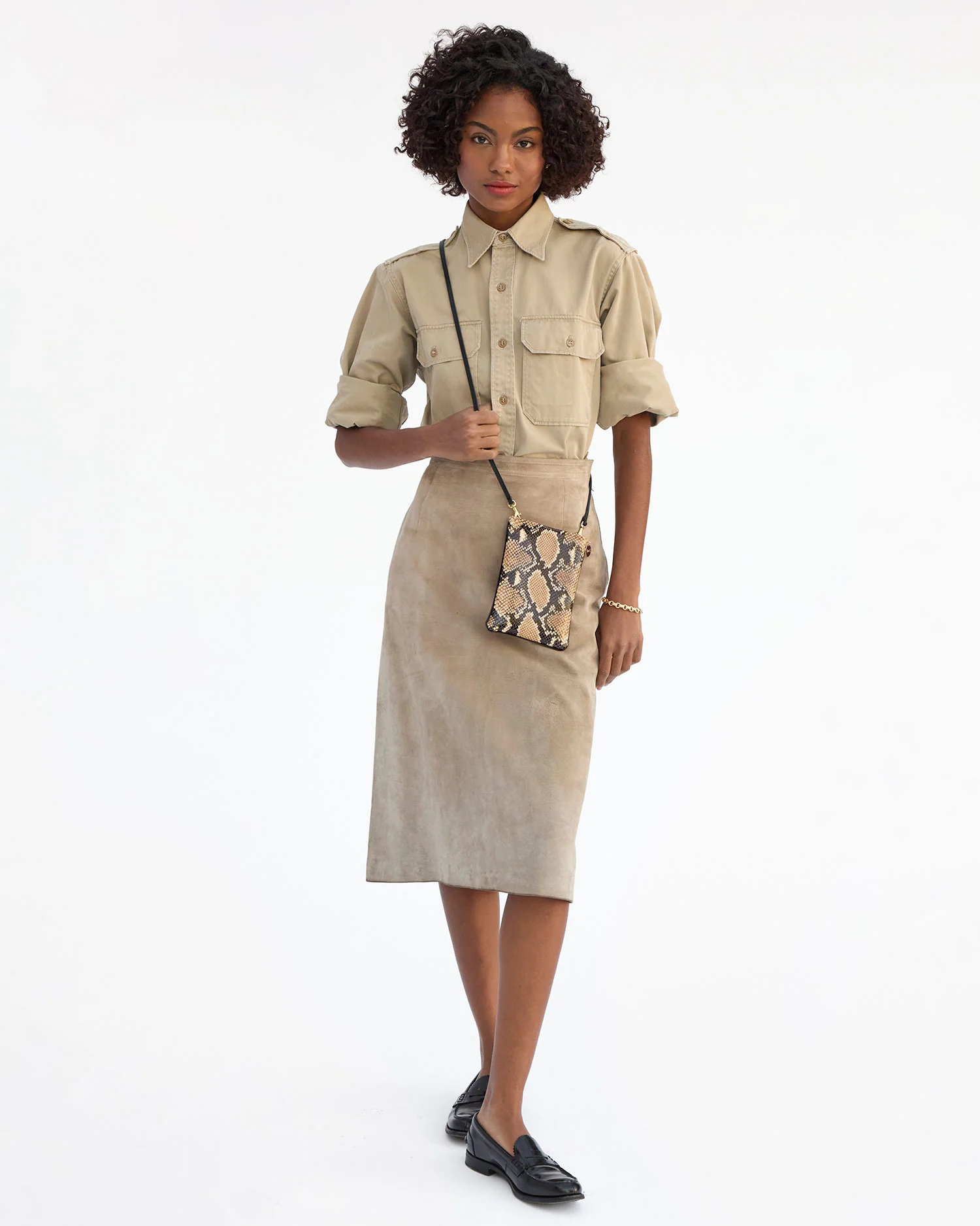 - Made of snake embossed Italian leather